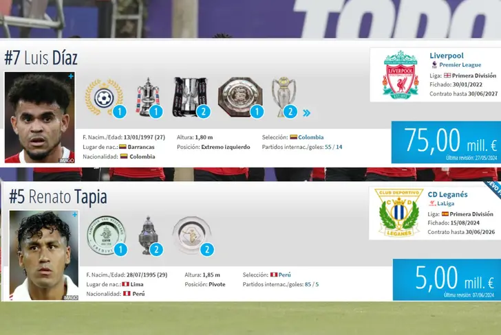 Haciendo cálculos y sacando estos monton mencionados al precio de la moneda peruana, Luis Díaz costaría un promedio de 300 millones de soles y Renato Tapia tan solo llegaría a un máximo 20 millones de soles, con lo cual podemos deducir una diferencia de 280 millones de soles; es decir, una verdadera locura en todo el sentido de la palabra y vaya que tiene sentido. El atacante cafetero es la estrella del Liverpool de Inglaterra, mientras que el volante bicolor recientemente fichó por el modesto Leganés de La Liga española.