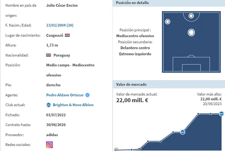 Por ejemplo, el jugador más caro de la Selección Peruana tiene un valor internacional de 5 millones de euros y estamos hablando de Renato Tapia, quien hasta esta temporada jugó en un modesto Celta de Vigo de La Liga Española; mientras que la Selección Paraguaya tiene en Julio Enciso, quien defiende la camiseta del Brighton de la Premier League de Inglaterra, a su joya más preciada con un costo de 22 millones de euros; es decir, una verdadera locura que en estos sería impensado tener en la Videna.