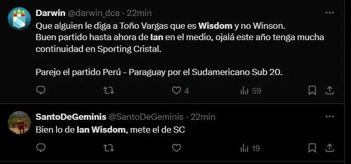 En el emocionante encuentro entre Perú y Paraguay por el Sudamericano Sub-20, un jugador ha destacado por encima del resto: Ian Wisdom. El volante de Sporting Cristal ha demostrado un nivel de juego excepcional en los primeros minutos del partido, siendo el eje del equipo y demostrando una madurez sorprendente para su edad, a diferencia de otras presuntas figuras del plantel bicolor como Maxloren Castro y Víctor Guzmán.