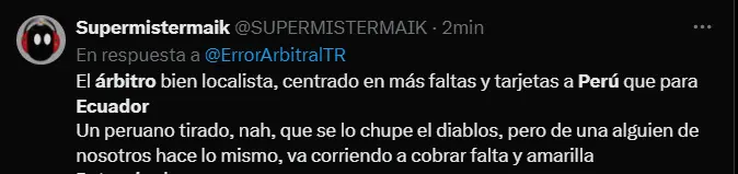 Por ejemplo, Marcos López recibió una tremenda pisada en uno de sus talones, pero para el juez principal no fue falta y peor aún, tampoco es que desde el VAR lo hayan llamado para alguna revisión de por medio. Luego, le sacó tarjeta amarilla a Luis Advíncula en una falta que no ameritaba sanción alguna, pero que al parecer sí sostuvo que la merecía. Todo bien con que se haya podido equivocar, aunque el tema es que los errores no son para los 2 lados y al parecer la Selección Ecuatoriana tiene corona.