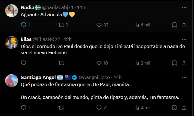 Lo que más sorprendió fue la reacción de la hinchada argentina, especialmente de los hinchas de Boca Juniors. En lugar de respaldar incondicionalmente a De Paul, como podría esperarse, una gran cantidad de usuarios en Twitter mostraron su apoyo a Advíncula.