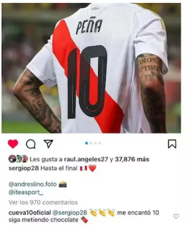 "Me encantó, ‘10′. Siga metiendo 'chocolate'"; fue el comentario que realizó Christian Cueva a una reciente publicación que recientemente compartió Sergio Peña a través de sus redes sociales oficiales. Claramente, podemos notar que ‘Cuevita’ estuvo muy al pendiente del equipo de todos y, por más que en estos momentos sea parte de la Selección Peruana, ya que no lo merece de ninguna manera por sus comportamientos dentro y fuera de la cancha, no dudó en elogiar a su compañero y enaltecerlo de estupenda manera a nivel nacional.
