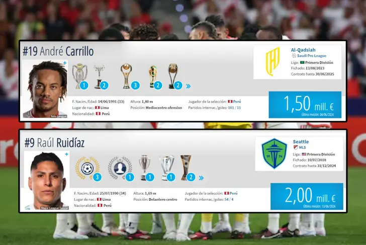 Frente a este escenario, es importante destacar que Paolo Guerrero cuesta 100 mil euros, Christian Cueva vale 500 mil euros, André Carrillo cuesta 1,5 millones de euros y Raúl Ruidíaz vale 2 millones de euros, lo cual en total daría 4,1 millones de euros y soles, un aproximado cercano a los 16,4 millones. Dicho esto, si el profesor Jorge Fossati llamara a estos 4 jugadores que estuvieron en el Mundial Rusia 2018, la Selección Peruana tendría un valor mundial de 44,95 millones de euros, lo que en moneda peruana daría un promedio de 179,8.