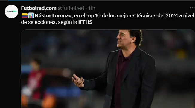 La Federación Internacional de Historia y Estadística de Fútbol (IFFHS) ha sorprendido al mundo del fútbol al incluir a Néstor Lorenzo entre los 10 mejores entrenadores del mundo en el año 2024. Este reconocimiento destaca el excelente trabajo realizado por el argentino al frente de la Selección Colombia, donde ha logrado resultados sobresalientes y ha superado a figuras consagradas como Marcelo Bielsa, actual entrenador de la selección uruguaya, aunque lamentablemente desde la FPF nunca lo vieron como una opción para la Bicolor teniéndolo tan cerca trabajando en FBC Melgar de Arequipa.