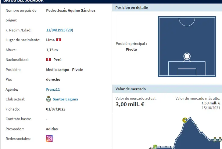 El volante nacional que pertenece al Santos Laguna de la Liga MX tiene una cotización internacional de 3 millones de euros, lo que en soles daría un promedio cercano a los 12 millones, de acuerdo al portal especializado ´Transfermarkt´. Lo ideal sería que en las próximas semanas ya empiece a tener actividad con su equipo y a partir de ahí ponerse muy bien en todo aspecto para cuando llegue el momento de la reanudación de las Eliminatorias Sudamericanas está listo para reaparecer en la Bicolor.