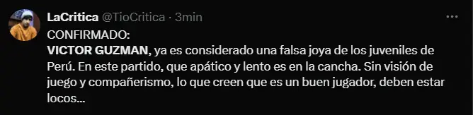 La derrota de la Selección Peruana Sub-20 ante Paraguay en su debut en el Sudamericano ha generado diversas opiniones y análisis. Uno de los jugadores que ha estado en el ojo del huracán es Víctor Guzmán, delantero de Alianza Lima, quien ha sido señalado por su falta de contundencia en el área rival.