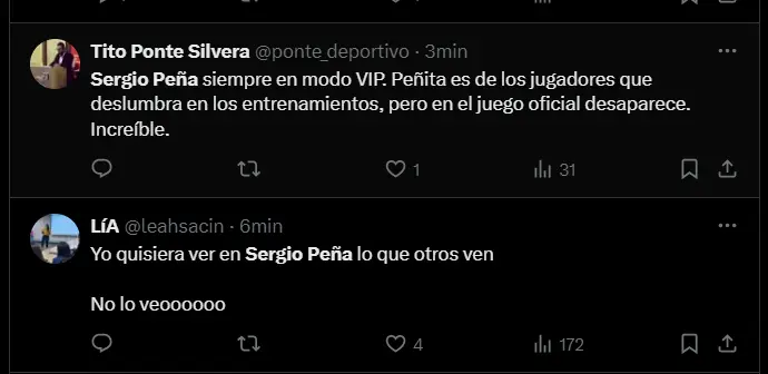 Sin pedir el balón, sin tener chances de tener contacto con el sistema ofensivo y sin acciones de peligro, nadie puede negar de que Sergio Peña anda sobrando en el equipo titular y no hay mejoras que se puedan apreciar. Por ello es que hasta el momento la Selección Peruana no ha podido generar algún tipo de susto en el área de la Selección Chilena y realmente parece muy complicado pensar en un posible triunfo si es que seguimos con este rendimiento.